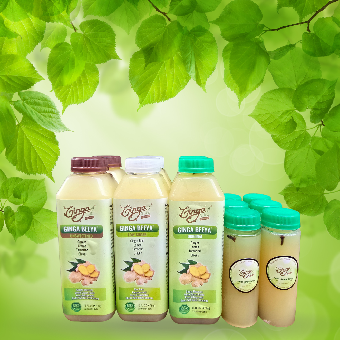 Our Ginga Beeya (“ginger beer”) is a non-alcoholic drink crafted from ginger, lemon, tamarind, and cloves ingredients known for their nutritional benefits and bold, refreshing taste. “Healthy” has never tasted so good!